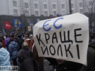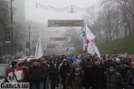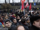 Среди толпы появились лидеры оппозиции - Олег Тягнибок, Арсений Ясенюк. С ними был также Юрий Луценко. Также - Игорь Мирошниченко. На плечи двум крепким мужчинам поднимается Арсений Яценюк. Выкрикивая сразу в два рупора, призвал людей не реагировать на провокации, которых во время митинга довольно много и которые устраивает власть, потому что начинает людей бояться.