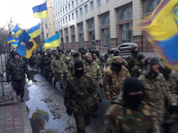 Бойцы батальона "Донбасс" прошлись маршем к зданию МВД в Киеве.