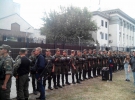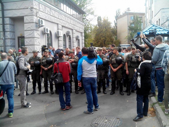 Около 100 полицейских и военных окружили посольство России на Воздухофлотском просп. в Киеве. С 10 до 12:30 голосовать пришли 2 человека.