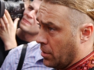 Активисты не пускают желающих проголосовать. Депутат Верховной Рады седьмого созыва Игорь Мирошниченко подрался с россиянином лет 50, который хотел пройти в посольство. Их развела полиция и отвела к своему автобусу.