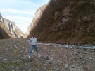 Подбирает 39-летний Анатолий Дзукаев на Toyota. Возвращается домой во Владикавказ в Северной Осетии. Рассказываю ему про фитчин и Сергея Бодрова. Предлагает отвезти в то ущелье. Но у машины низкий клиренс, не доезжаем. Однако красоту гор наблюдаю. Потом угощает фитчином и местным самогоном - араком. Едем купаться в бассейне с горячей водой горных источников. Везет 30 км до границы. Там затор из грузовиков стоит на несколько километров. 200 метров до пропускного пункта иду пешком. Грузины, глядя на мой рюкзак, спрашивают: