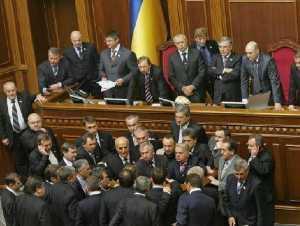 Фракция БЮТ заблокировала трибуну Верховной Рады.