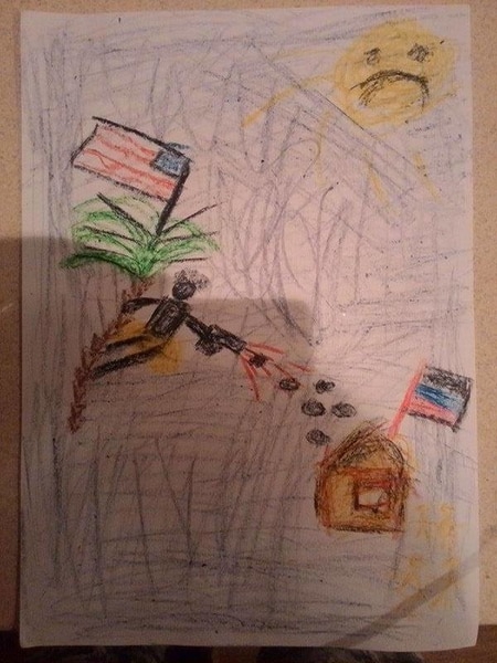 Учителя одной из школ Донецкой области показали шокирующие рисунки своих учеников. Об этом сообщил координатор группы "СтопТеррор", общественный деятель Семен Кабакаев на странице в Facebook.