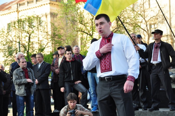 В завершение нардеп призвал всех патриотов прогуляться Львовом 9 мая, после чего все выполнили государственный гимн.