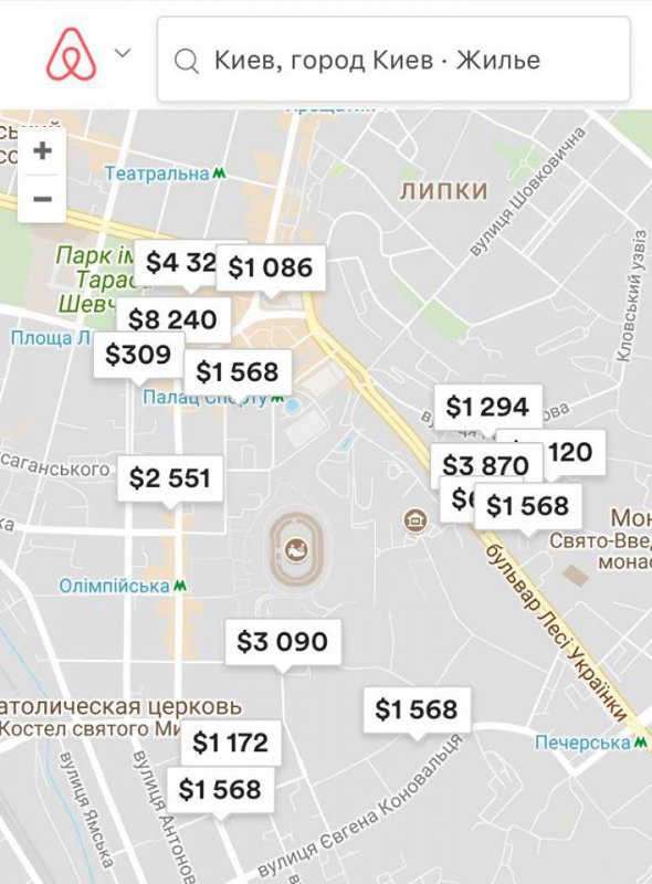 В Facebook один из пользователей опубликовал скриншот, который показывает просто впечатляющие цены за жилье возле стадиона, которые колеблются от $ 1,5 до $ 8,2 тыс.