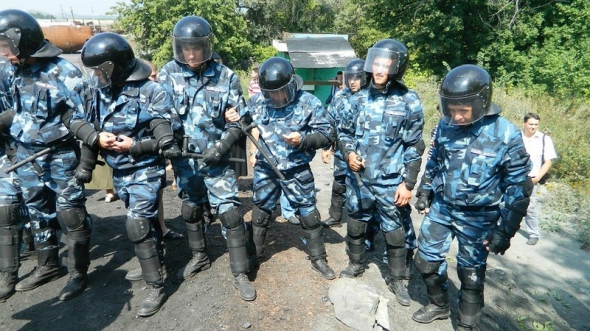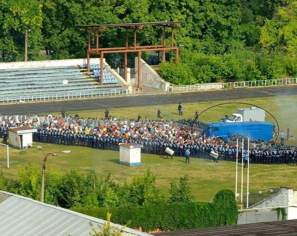 В тоже время в Харькове правоохранителей активно учат, как же такие акции протеста "правильно" разгонять. Так в Интернете появились фото того, как на стадионе ХТЗ в Харькове проходят милицейские учения, максимально приближенные к боевым. На поле проходила тренировка с использованием спецсредств, спецтехники, специально обученных собак.