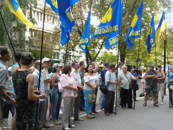 Митингующие в течение получаса скандировали: "Прокуратура, действий по закону", "Фальсификаторов на нары", Пилипишина под стражу ", "Пшонка помни, Янукович не вечен ".