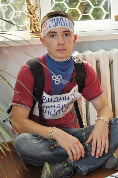 Молодой парень Иван Фурлет приковал себя к батарее Управления Государственной миграционной службы в Житомирской области с требованием выдать ему заграничный паспорт. "Фурлет и другие демальянсовцев находятся в кабинете и.о. начальника областного ДМС. Иван приковал себя цепью к батарее. Чиновник продолжает работать, делая вид, что ничего не происходит. Молодому человеку не выдают его загранпаспорт, несмотря на то, что он выиграл два суда по этому поводу", - рассказали в организации "Демократический альянс".