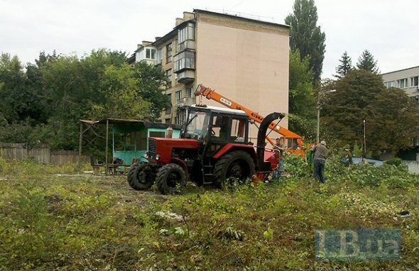 Местные жители и активисты ВО "Свобода" пытались остановить работы по вырубке деревьев на Шулявский, 32, рядом с Киевским зоопарком. Несколько десятков человек заблокировали ворота стройплощадки и пытались уговорить рабочих остановиться, ссылаясь на Закон Украины "О моратории на вырубку зеленых насаждений в Киеве". Но рабочие продолжили пилить деревья. Работник Киевзеленстроя сообщил протестующим, что работы по вырубке деревьев проводит их коммунальное предприятие. Для того, чтобы освободить площадку под строительство офисного центра с паркингом.