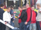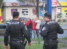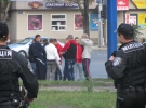 Группа юношей в спортивных костюмах с веселыми выражениями лиц подстерегала участников недалеко от монумента журналистам-фронтовикам на Киевском проспекте.