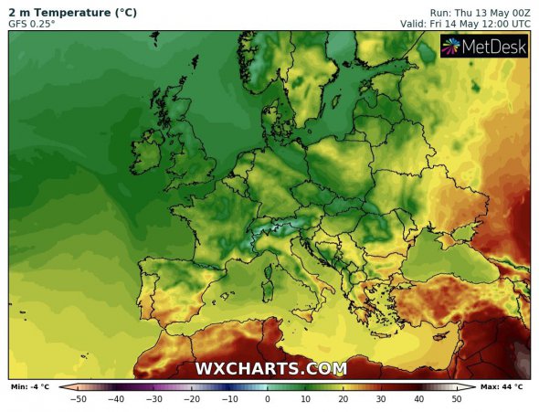 Днем там ожидается +24...28°С, сообщает синоптик Наталья Диденко в Facebook. На Запорожье и Днепропетровщине 14 мая будет +22...26°С.