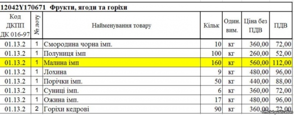 В частности, за этим сообщением, цена импортной малины составляет 672 гривны за килограмм.