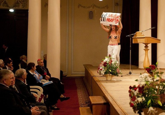 Вчера, 20 сентября, FEMEN провели несанкционированную акцию перед участниками Четвертого национального Конгресса по биоэтике.