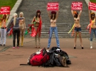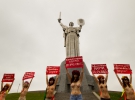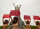 Сегодня возле столичного монумента "Родина-мать" женское движение FEMEN провело акцию ко Дню Победы. Активистки движения развернули плакаты "Родина-мать, научи побеждать" на 6 языках и выразили свое восхищение подвигом героям Великой Отечественной войны.