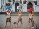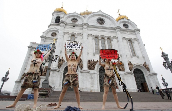 В Москве у Храма Христа Спасителя прошла акция девушек движения FEMEN, приехавших поддержать российскую оппозицию, которая в эти дни проводит акции против фальсификации на выборах.