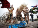Девушки, известные своими эпатажными акциями, действовали по своей отработанной схеме. Добравшись до места акции, они разделись до пояса и запели "Боже, царя гони!". В интервью они заявили, что приехали в Москву, чтобы солидаризироваться с российской оппозицией, которая считает результаты выборов сфальсифицированными.