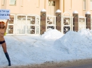 Женское движение FEMEN провело моно-митинг в городе Днепропетровск. Раздетая активистка прошлась по "знаковым местам" в жизни и деятельности Юлии Тимошенко.