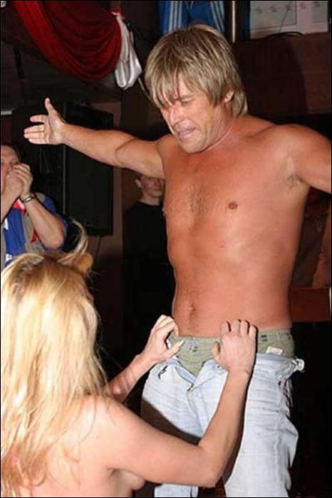 Алексей не растерялся и не забился в угол, чем вызвал уважение окружающих. Тем более,что Глызину уже приходилось носил на руках стриптизёрш - на всеукраинском конкурсе стриптиза в Одессе. И на этот раз он стал вытворять такое, что оконные стекла заведения чуть не вылетели от восторженных воплей, визга и топота.