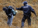 На всем пути следования к железнодорожному полотну выходили десятки тысяч человек. Они блокировали пути тракторами, разбирали рельсы и приковывали себя к ним наручниками. За последние сутки манифестации переросли в столкновения с полицией. Так в Нижней Саксонии активисты облили один из полицейских броневиков смолой и подожгли. Есть раненые.