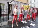 FEMEN-ки распивали шампанское, забрызгивали им охрану посольства и прохожих.