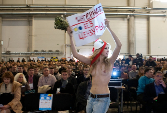Сегодня активистки женского движения FEMEN сорвали церемонию открытия Украинского форума интернет-деятелей.