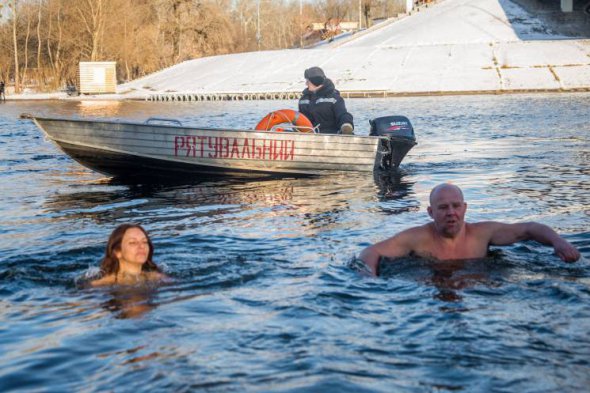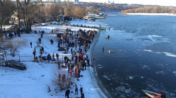 19 января, в столичном Гидропарке киевляне собрались, для того чтобы в Крещение искупаться в Днепре. Перед массовыми купаниями священники разных конфессий освятили прорубь.
