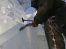 Обрабатывая лед, Сергей Дышлевой работал бензопилой и самодельными стамесками, выкованными с советских коньков.