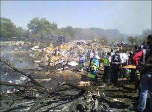 На записи, сделанной одной из камер наблюдения аэропорта, видно, как самолет, едва оторвавшись от земли, падает справа от полосы и, проскользив несколько сот метров, загорается и взрывается. Ранее свидетели происшествия сообщали, что перед падением у самолета загорелся один из двигателей, однако на видеозаписи признаков пожара на борту до падения не видно.