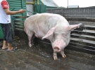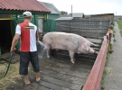 "Это он еще до сих пор от Евро отдыхает. Как привезли сюда, сразу хорошо вымыли. Так он залез в болото и давай в грязи качаться. Видно, за месяц пребывания на Майдане соскучился по свинским условиями жизни. Не успеем помыть, как снова весь в грязи ходит. Пришлось то болото закрыть ", - рассказал работник фермы Геннадий. Он ухаживает за Фунтиком.