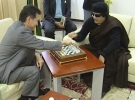 Муаммар Каддафи сыграл с президентом Международной шахматной федерации (ФИДЕ), бывшим президентом российской республики Калмыкия Кирсаном Илюмжиновым в шахматы. В ходе встречи Каддафи сказал, что никогда не покинет страну, несмотря на сильное давление, и не намерен отказываться от своих полномочий.