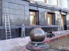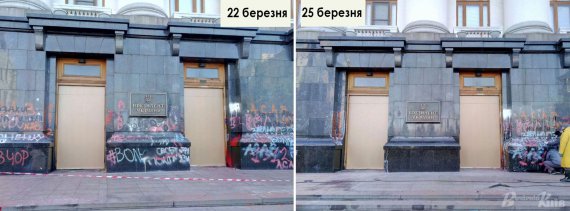 На 4-й день отмывания исчезло граффити вокруг таблички "Президент Украины". Очистили от надписей участки с левого и правого крыла здания.