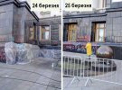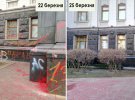 В четверг, 25 марта, продолжается чистка фасада Офиса президента, раскрашенного во время акции протеста.