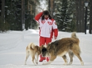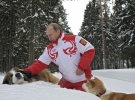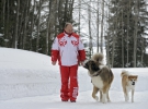 Сообщается, что трогательные снимки сделал в марте 2013 года личный фотограф главы государства Алексей Дружинин. Как раз в это время московский регион накрыли мощны снегопады, и президент воспользовался курьезом погоды, чтобы погулять по свежему снежку со своими любимцами – болгарской (каракачанской) овчаркой Баффи и собакой породы акита-ину Юмэ.