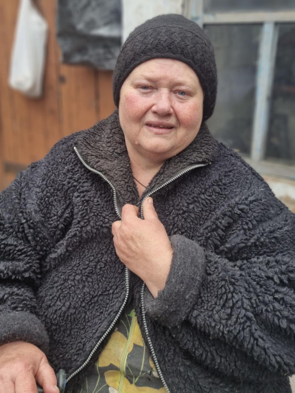 В октябре 2022 года холода начались. Я с больными ногами, тепла нет. Обстрелов все больше и они все сильнее. Окна в доме закрыты картонками. Когда начинался обстрел, осколки летят, все свистит. А еще после испуга у меня ноги начинают отказывать. Пока муж был, как-то держалась, а потом вообще расклеилась...