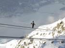Житель Швейцарии Фредди Нок прошелся по проводу, по которому курсирует фуникулер, без страховочных тросов на высоте около трех километров, сообщает World Record Academy. 46-летний канатоходец и акробат совершил свою "прогулку" несколько дней назад в горах в швейцарской коммуне Сильваплана.