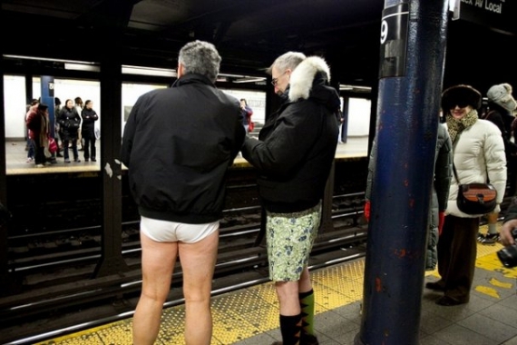 В воскресенье, 8 января, сотни людей во всем мире приняли участие в традиционной акции под названием "В метро без штанов", организованной группой активистов под названием Improv Everywhere, сообщает ТСН.