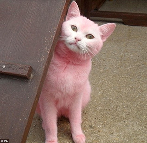 Случай с розовым котенком в Китае стал не первым подобным происшествием в 2011 году. Так, в мае на бетонной фабрике в Англии были найдены четыре котенка, шерсть которых выкрасилась в розовый цвет. Специалисты предположили, что животные покрасились в результате контакта с красным красителем, используемым на производстве.