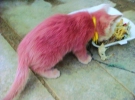 Котят, получивших клички Розовая пантера, Клузо, Дасти и Сериз, отправили в приют, где их начали отмывать. По мнению сотрудников приюта, на полное восстановление естественных цветов котят уйдет несколько месяцев.