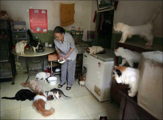 Но находятся среди жителей Пекина истинные любители домашних животных. Так, жительница китайской столицы Динг Чиянг, которую чаще называют Бабушка Динг, держит у себя в доме более 250 котов и собак. Не все эти коты и собаки бездомные. Некоторых из них принесли собственные хозяева, поскольку они не могут держать их у себя дома из-за принятого закона об очистке города от собак и кошек к Олимпиаде.