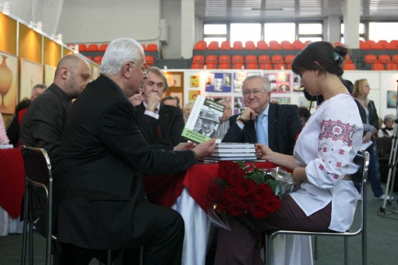 На стенде издательства "Фолио" продавали книжку Леонида Кравчука "Одна Украина, единый народ" за 70 грн. За полчаса продали почти 50 экземпляров. Здесь же состоялась автограф-сессия первого президента.