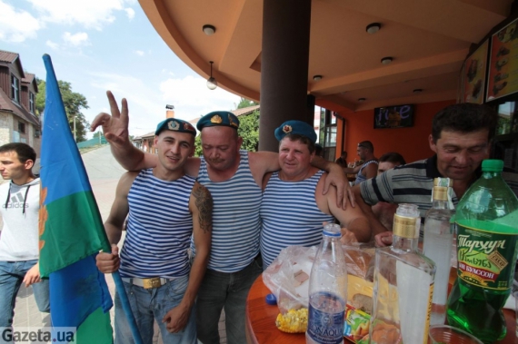 2 августа на столичном Гидропарке бывшие десантники отметили 82 годовщину воздушно-десантных войск. Ребята в "тельняшках" обсели все пляжные кафе и рестораны. Распивают пиво и водку, закусывают кукурузой и тонко нарезанной салями.