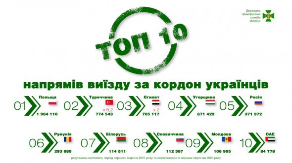 Назвали страны, в которые чаще всего ездили украинцы в первом полугодии 2021-го. Такие данные собрали в Госпогранслужбе.