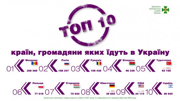 Среди иностранцев больше всего Украину посещали граждане Молдовы - 368, 4 тыс. человек. На втором месте русские - 198,3 тыс., на третьем - румыны - 109,4 тыс.