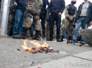 Группа молодых людей с георгиевскими лентами пришла сначала на Аллею Славы в парке им. Т. Шевченко, а затем пыталась прорваться на Куликово поле, передает "Укринформ".