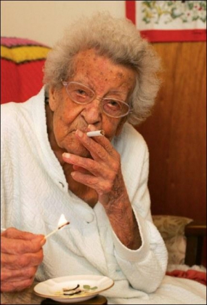 В свой сотый день рождения Лэнгли скурила 170-титысячную сигарету.