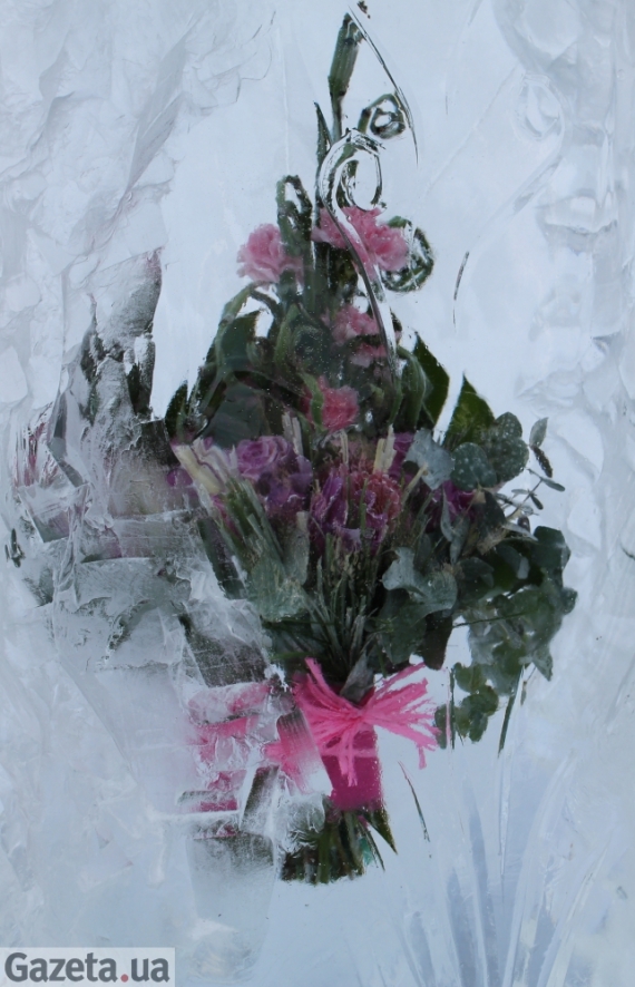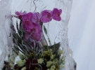 Вниманию посетителей предложили 10 скульптурных композиций - ледяных глыб с цветами внутри.