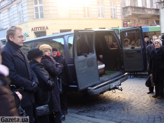 Из родных у гроба стоят два брата покойной - Богдан и Зиновий Корчаки - с семьями. Невестка Мирослава Гонгадзе и внучки не прилетели. Из Киева прибыла экс-уполномоченный по правам человека Верховной Рады Украины Нина Карпачева.