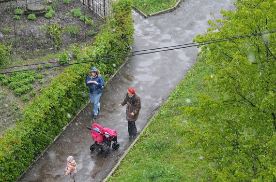 Сегодня, 25 апреля Львов начало засыпать снегом. С самого утра в городе шел дождь, который с полудня сменил мокрый снег.