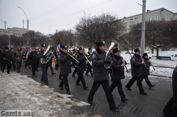 Около семьсот ветеранов Афганской войны собрались на площади Петрушевича. Оттуда они колонной двинулись к памятному знаку "Гражданам Львовщины, павшим в Афганистане в 1979-1989 г.г.". Впереди колонны шел духовой оркестр. За ним несколько человек несли венки. По дороге к монументу, афганцы возложили цветы к памятнику Тарасу Шевченко.