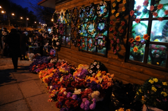 Вчера, 1 ноября, львовяне поминали своих умерших родственников. Возле Лычаковского кладбища разложился почти полноценный рынок. Люди продавали живые цветы, лампадки, венки. По традиции в этот день нужно зажигать свечу в память об умерших на их могилах. Дешевые лампадки продавали по 3 гривны. Небольшой букет хризантем стоил 5 гривен.